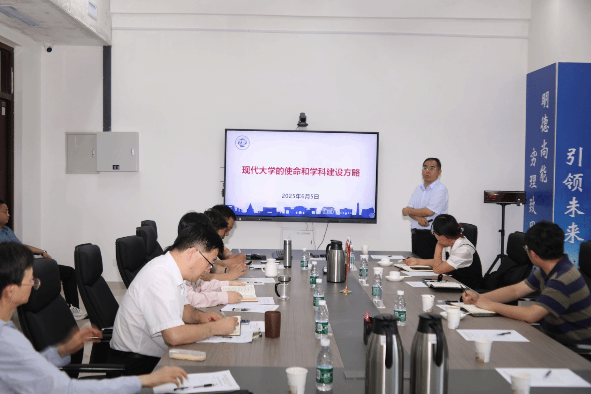 为深入贯彻落实学校筑峰学科建设与规划专题会议精神,高质量推进化学工程与技术学科提质进位,科学谋划化工学科“十五五”发展蓝图,6月5日上午,即时足球 在九章学堂北楼A203会议室召开化工学科发展研讨会。学院领导班子成员、系室主任及党支部书记、各部门负责人、全体高层次人才及教授出席会议。会议特邀河南大学学科建设处处长赵俊伟、副处长何威、建设科任海燕一行莅临指导。会议由学院党委书记程亚敏主持。