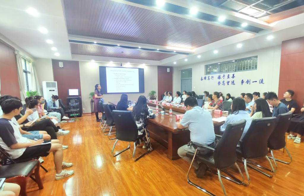 受聘仪式结束后,吉晓燕教授作了题为“Advanced fluid materials for energy applications”的学术报告。她在报告中深入浅出的从离子液体的定义出发,结合离子液体本身的特性,详细介绍了离子液体在CO2分离和利用、可持续电池以及生物质能源和绿氢等方面的应用情况。报告后,学院教师结合自身研究课题与吉教授进行了深入的探讨和交流。
