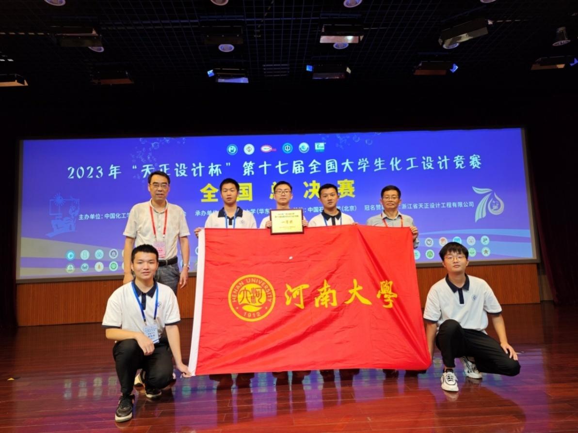 在全国总决赛中,他们与华东理工大学、中国石油大学(华东)、中山大学、大连理工大学等高校一起竞赛,无论在专项评审,还是在现场答辩等环节都表现出了很强的专业能力和综合素质,最终获得全国一等奖,展现了河南大学学子的良好精神风貌。