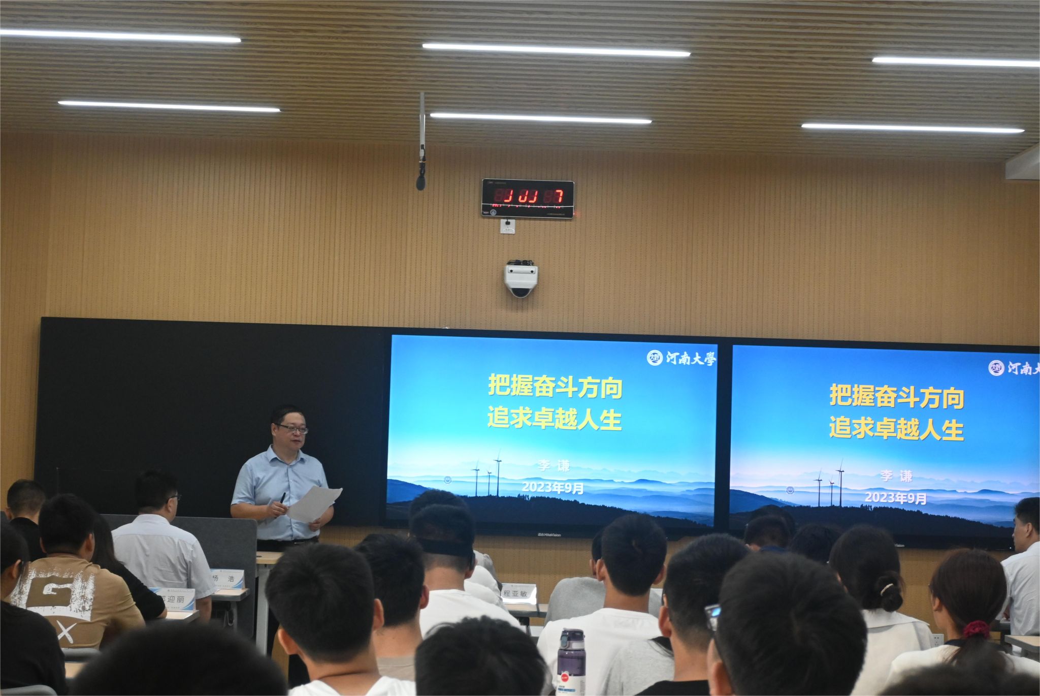 在郑州校区友兰学堂南楼C座308教室举行2023级本科新生开学典礼。学院领导班子、教师代表、在校生代表以及全体2023级本科生参加典礼。典礼由即时足球