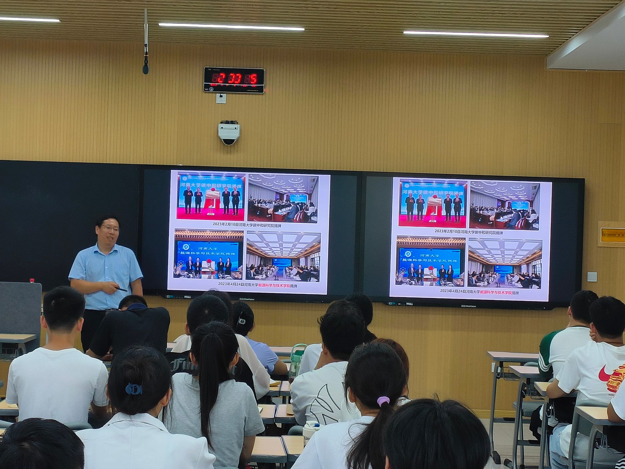 学院党委副书记程亚敏围绕河南大学办校历史和学院的发展定位,向新生做了全面介绍,教育引导新生树立爱校荣校思想,增强归属感和凝聚力。同时,结合工作案例,对同学们进行了大学规划指导和安全教育。
