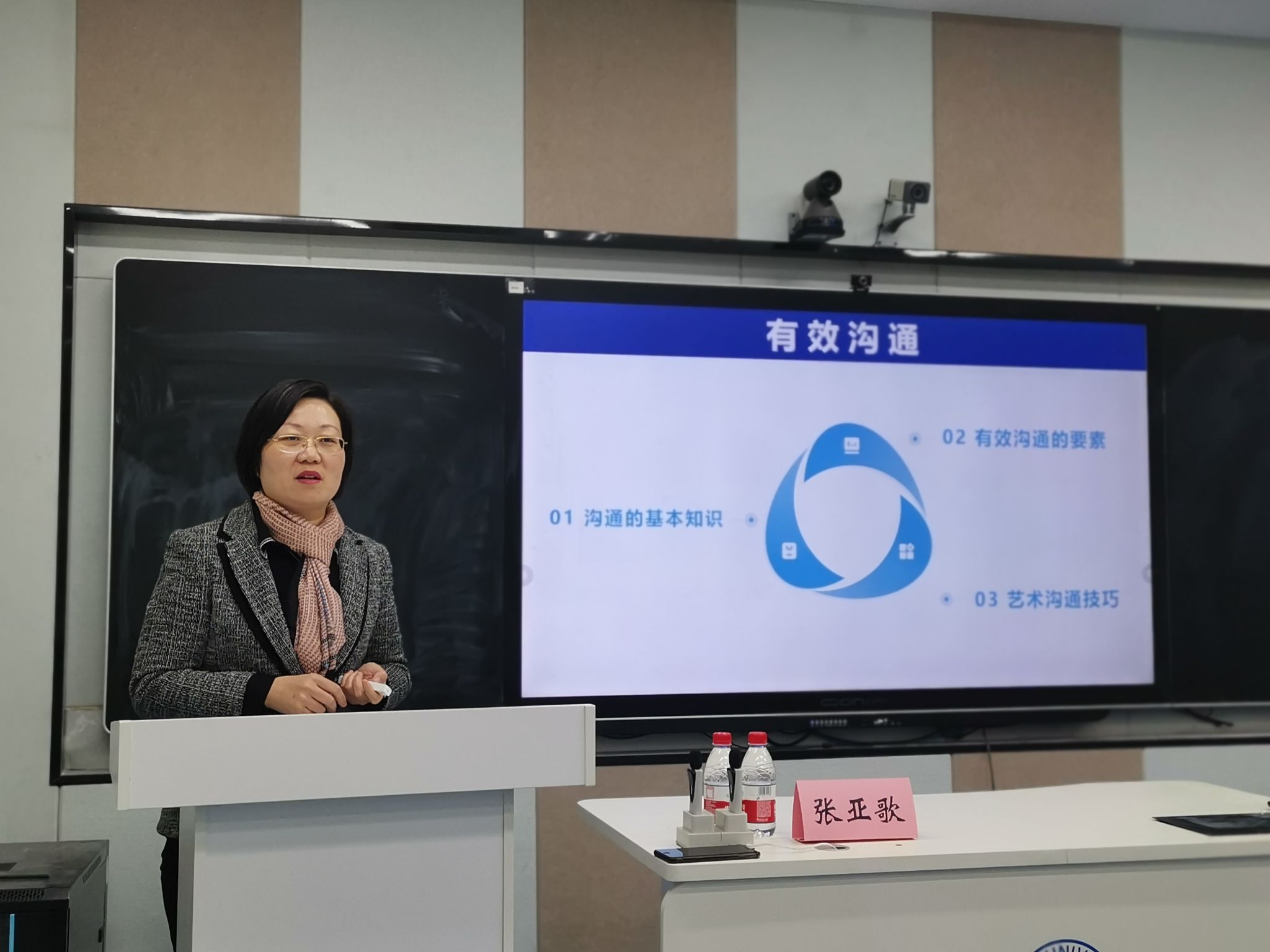 邀请我校人才人事部副部长张亚歌为2023级研究生开展《综合素质教育:有效沟通》讲座,讲座由学院党委副书记程亚敏主持。