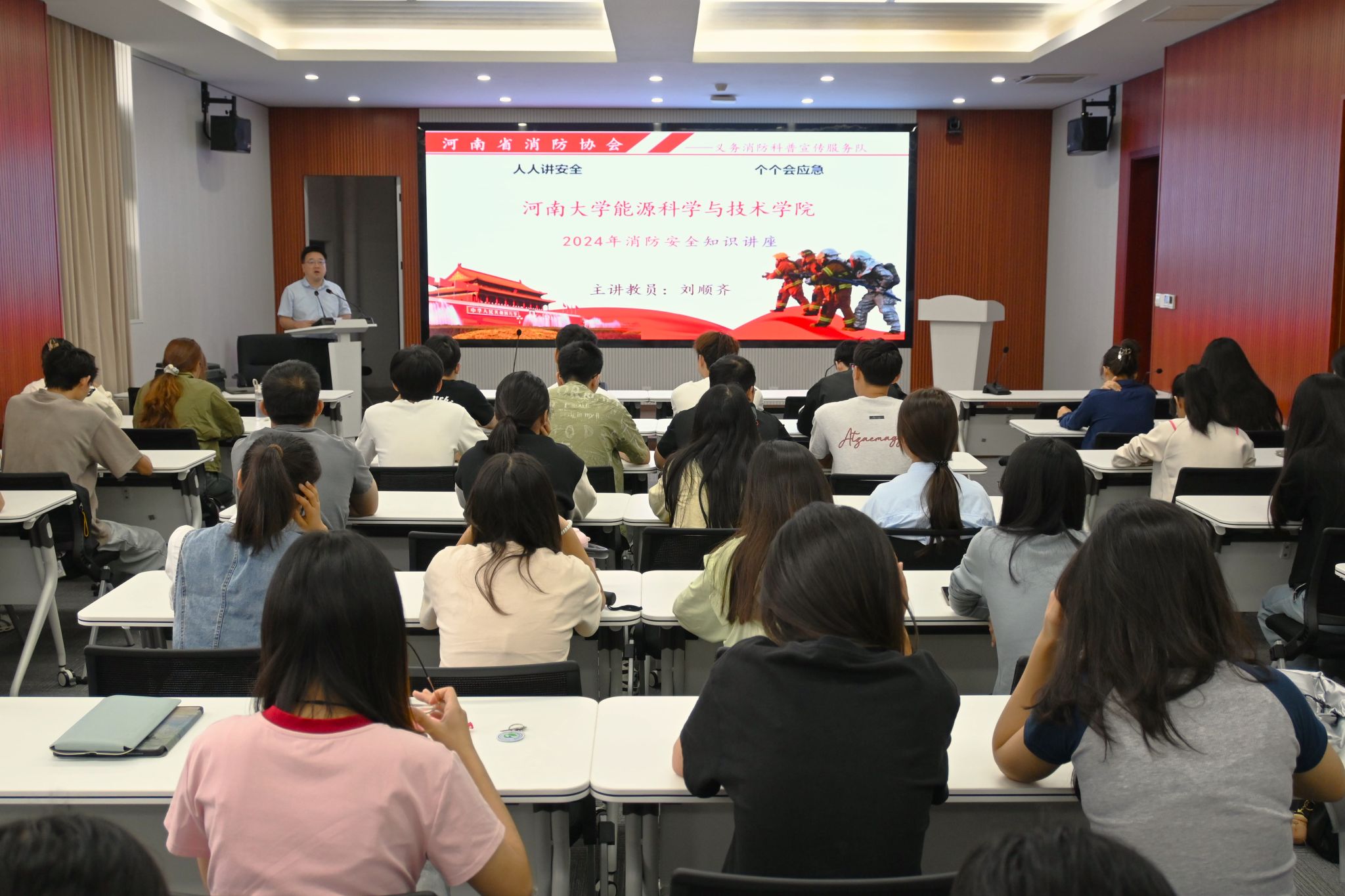 活动伊始,省消防协会义务消防科普宣传服务队刘顺齐教员为全体成员在九章北楼C座210会议室进行消防安全培训。刘顺齐结合实际案例,深入浅出地讲解了消防安全知识,包括火灾的预防、火灾发生时的应急处理方法、消防器材的正确使用等。师生们认真聆听,积极提问,现场学习氛围浓厚。