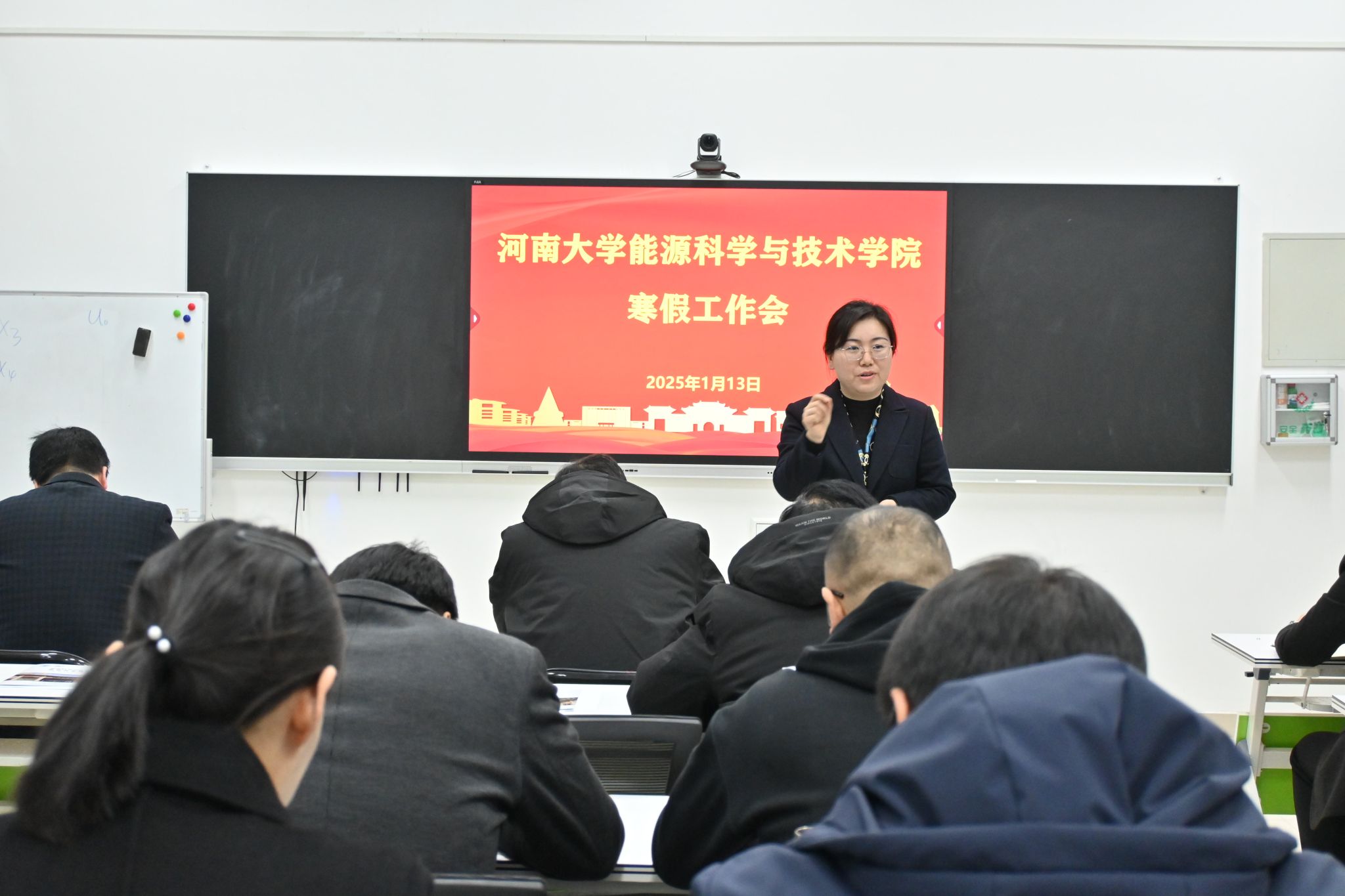 召开寒假工作会,会议由学院党委书记程亚敏主持,全院教职工参加。