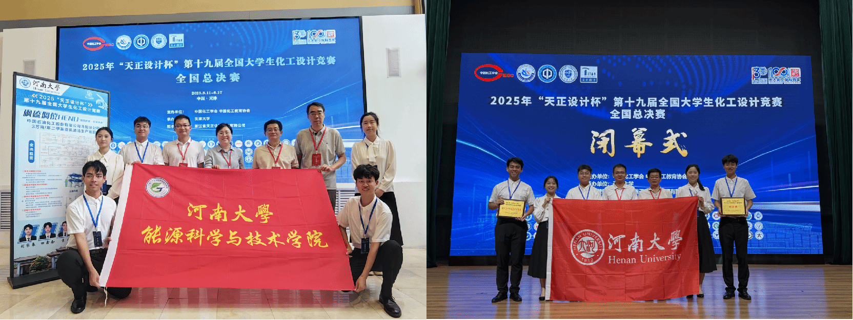 本届竞赛以“创新驱动、绿色发展”为主题,要求为大型化工企业设计一座二甲基亚砜(DMSO)清洁生产分厂,需综合绿色低碳、本质安全、经济效益等核心指标完成方案设计,并提交设计作品的源文件、工程图纸及设计文档,全面考察学生的工程实践与创新能力。自3月份以来,在李庆华、郭泉辉、陈奎等老师的指导下,“砜硫倜傥HENU”团队以3万吨/年二甲基亚砜清洁生产为题,从可行性研究、工艺方案论证、流程搭建、设备设计及选型、总图与车间布置、经济分析等多个维度出发,全情投入、认真打磨,历经数月深入而细致的设计作品。在7月27-31日华中赛区预选赛中获得华中赛区特等奖,成功入选全国总决赛。在总决赛比赛中,团队成员团结合作、沉着冷静、自信生动地展示了设计思路和设计内容,最终以优异的专业能力和综合素养斩获全国特等奖,并连续两年获得了现代设计方法应用优秀奖,展现了河南大学学子的综合实力与青春风采。