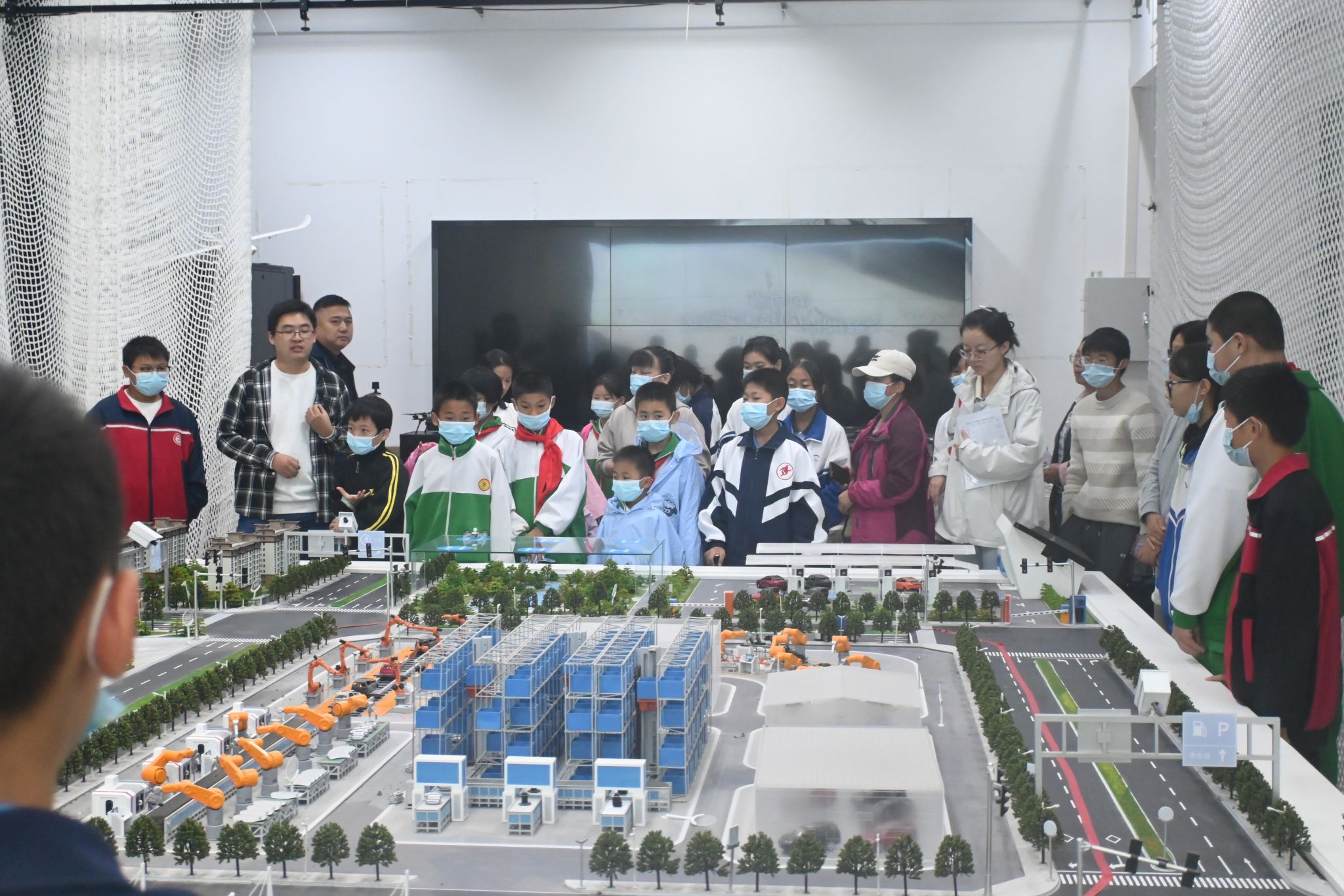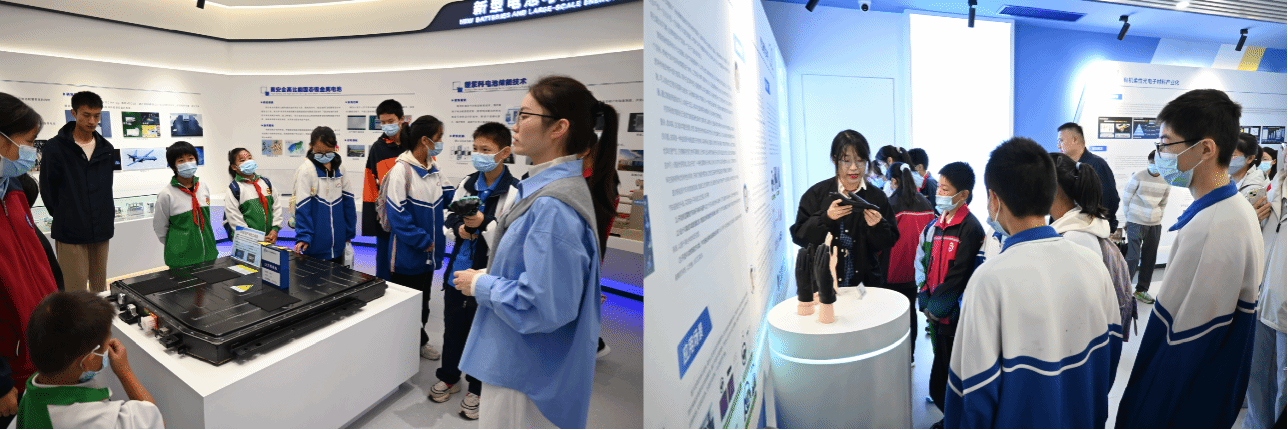在科普团队的带领下,同学们先后参观了人工智能实验室、龙子湖新能源实验室、河南省柔性电子产业技术研究院科技展厅、即时足球