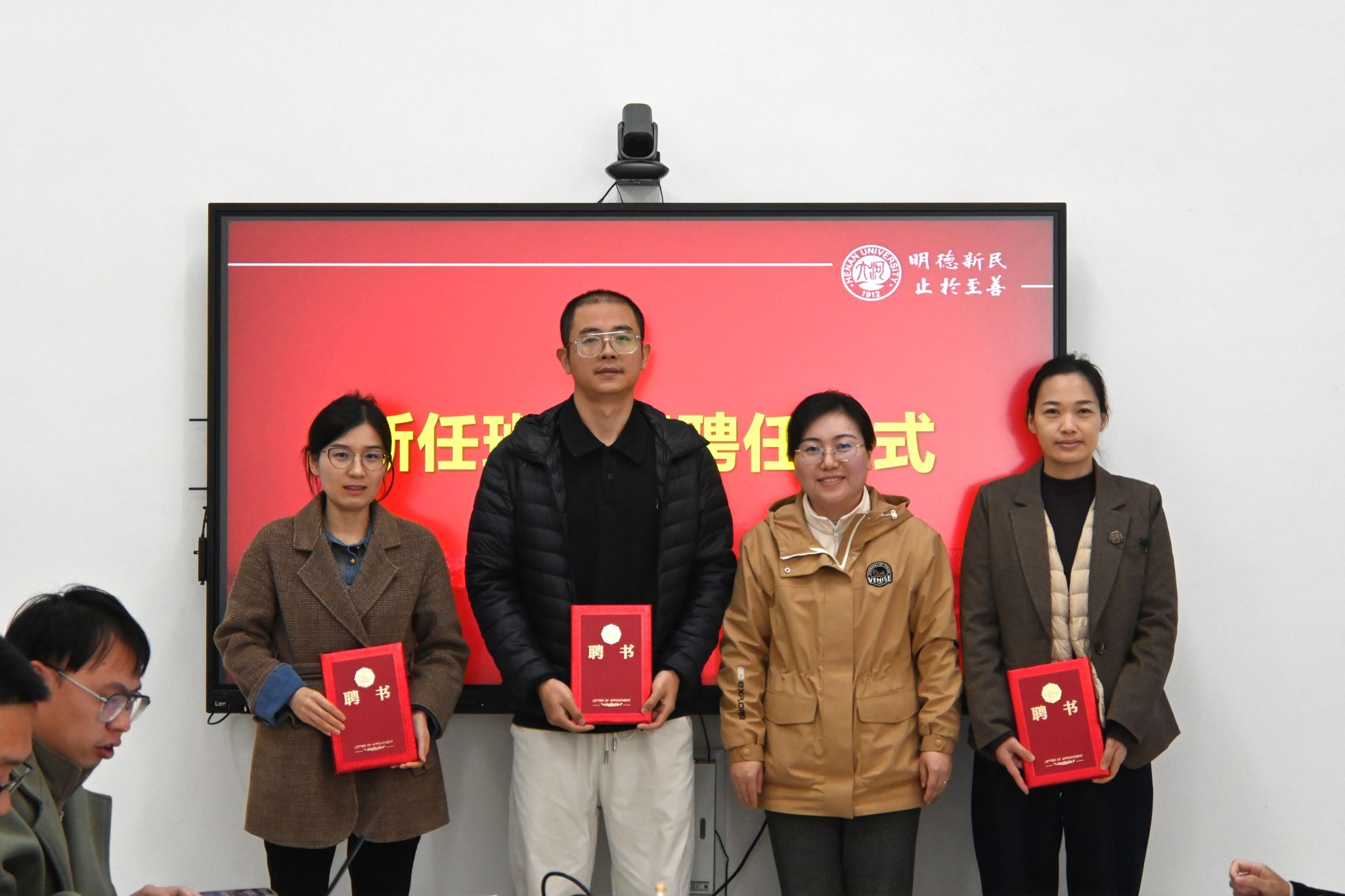 随后举行的新班主任聘任仪式上,学院副院长杨浩宣读聘任决定,任命田亚杰、孟红杰、吕菲亚三位老师分别担任2024级卓越班、2025级新能源科学与工程班与2025级化学工程与工艺班班主任,学院党委书记程亚敏为新任班主任颁发聘书。