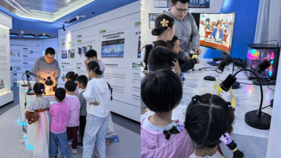 在实验室教师和学生志愿者的带领下,孩子们走进龙子湖新能源实验室和柔性电子产业技术研究院展厅,精密的仪器设备、前沿的科研项目,让孩子们赞叹不已。“哇,好神奇”“老师,这是什么呀”……伴随着孩子们一声声天真的询问,老师们耐心解答,让他们了解各类实验设备的用途,为孩子们打开科学世界的大门。